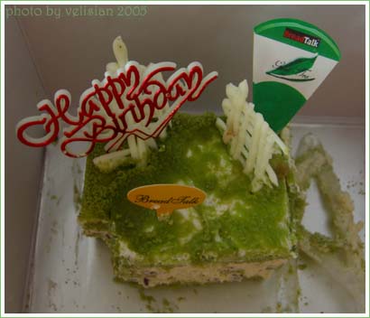 昨天是我們公司會計部的經理的生日 ﹐ 助理就去買了個BreadTalk 的Tea Garden 綠茶蛋糕回來和大家分享。