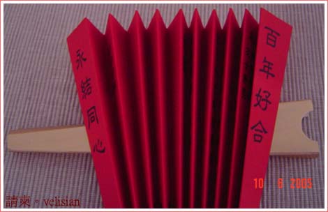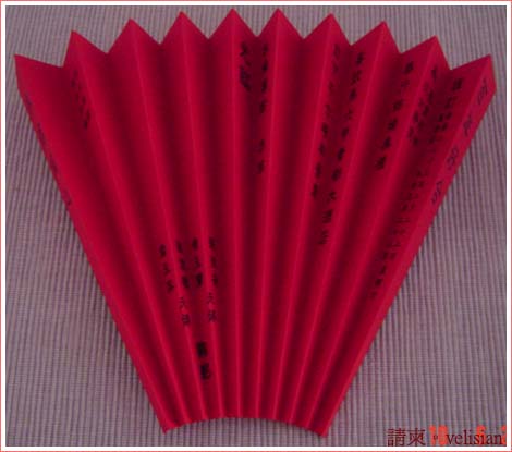 這張請柬外面是金色的小盒子裝著﹐裡面是折成扇子的請柬﹐非常簡單但是很特別。