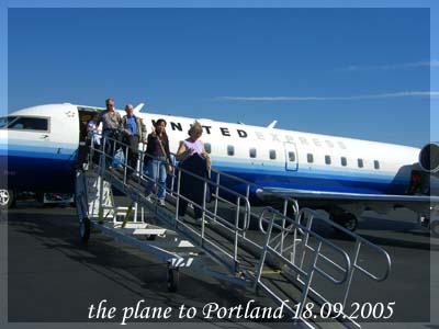 第二天﹐大概8點半就出發到機場(又是第二天﹗沒辦法﹐當地時間比我們慢15個小時)﹐再乘搭10點45分的班機飛到Portland。抵達時是中午1點05分。之後再乘坐半個小時車程的士到現在住的酒店﹐大概是下午2點多我們才終於抵達了我們的目的地﹐就是我們的房間。