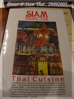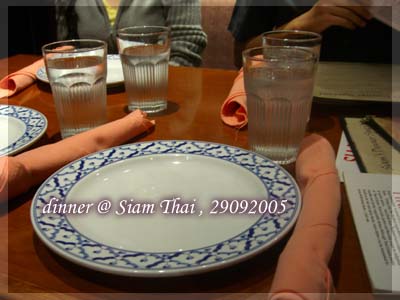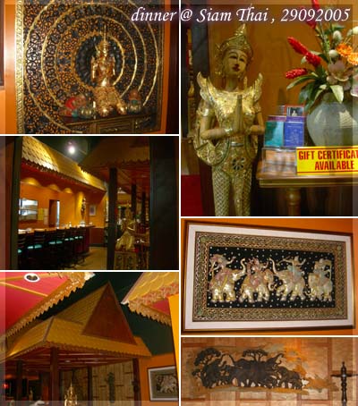 晚上大概7點半抵達餐廳。同事的brother in law 極力推薦這家泰國餐廳﹐因為裡面的設計很漂亮﹐很有泰國風味。
