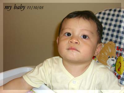 有著一頭卷髮的寶貝﹐實在很難打理。很容易就會被弄得亂七八糟﹐常常都要幫他把頭髮梳好使它們得服服貼貼。有時候是剛睡醒時﹐就會看到一個小佛祖出現﹐因為他的頭髮會自動卷成一粒一粒的﹐就象佛祖一樣。我曾經希望我的孩子有一頭又直又黑的頭髮﹐那麼我就可以幫他剪個椰殼頭。但是現在願望無法實現了。