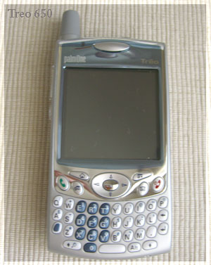 這就是老公新買的手機 - PalmOne Treo 650。功能很多﹐很好用。 臭屁老公買回來後還讓我在新年期間試用﹐好讓我不再嘮叨他買了一部超貴的手機。可是新年回來後﹐他就機不離手了﹐我完全沒有機會再用過。