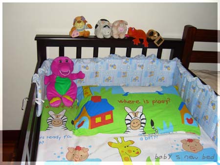 除了他生病的那兩晚和我一起睡之外﹐其它時候他都是睡在這裡。基本上他已經接受了自己睡在一張床﹐半夜也不會吵著找我了。 不過早上喝奶過後﹐偶爾還是會爬過來找我陪他睡。