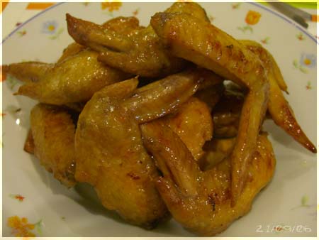 然後也用烤箱來烤雞翅膀。有沒有看到﹐照片出來那顏色是多麼漂亮﹗﹗