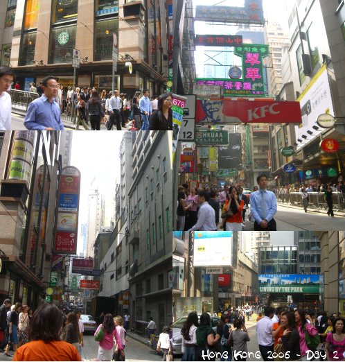 中午時分的中環﹐街上滿滿都是人潮﹐很熱鬧。蘭桂坊﹐蘇豪區﹐鏞記燒鵝以及很多出名的餐館都在這裡附近。