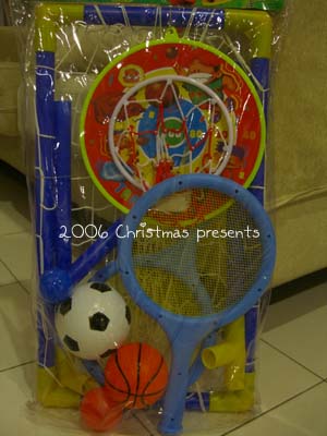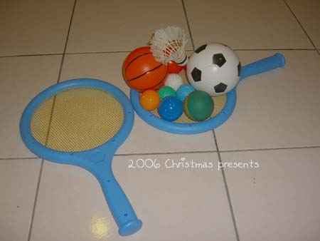 其實這套玩具有4粒球(足球,籃球,網球和 hoki ),其它的都是寶貝放在一起的。