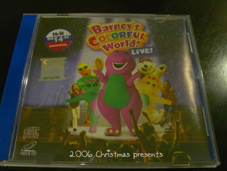Barney VCD 一片。 這個是寶貝最愛的禮物。