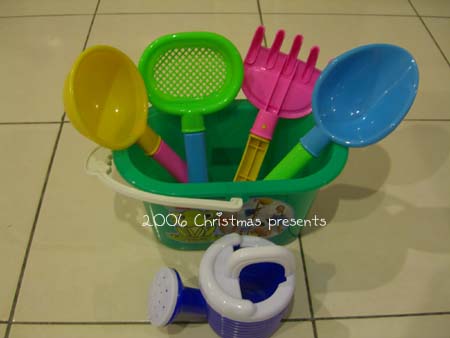 沙灘玩耍的工具。後面那4支我給寶貝洗澡的時候玩。至於前面那個類似澆花的我交待大家暫時不可以教他如何用,以免不必要的麻煩。