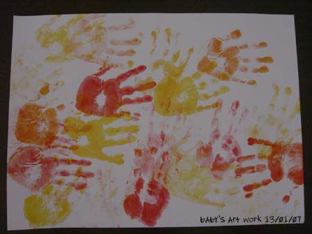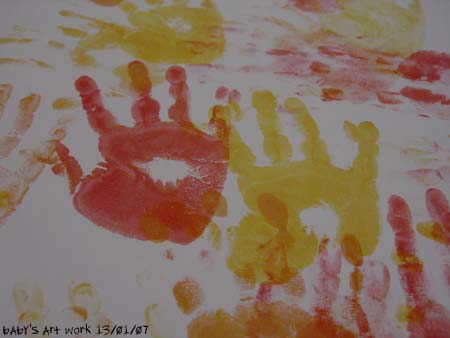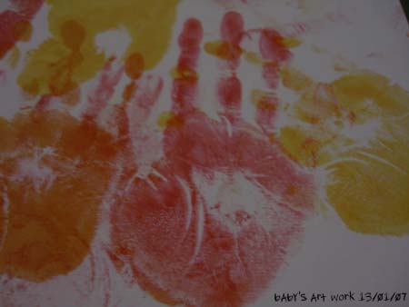 這是寶貝在兩歲接近三個月時的佳作 - 小小手印。
