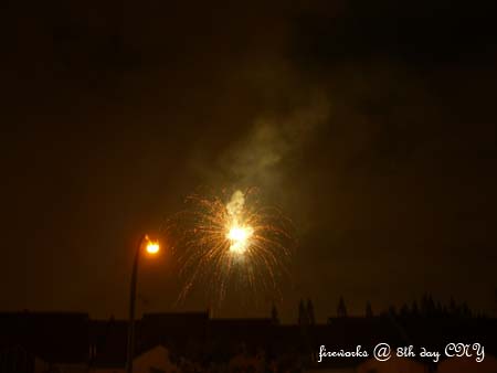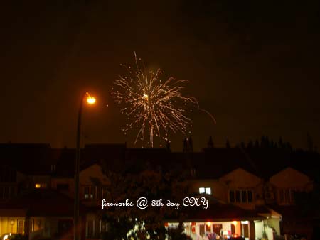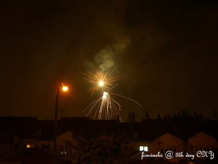 當晚的爆竹聲連聲不絕﹐煙火也是N放個不停﹐熱鬧得不得了。