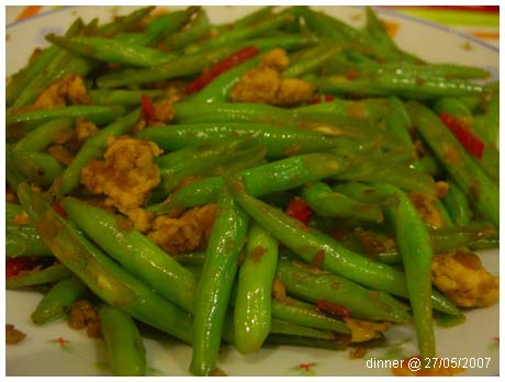 和之前炒的幹煸四季豆不一樣。 這次我省了泡油的步驟﹐還加入了豆醬。