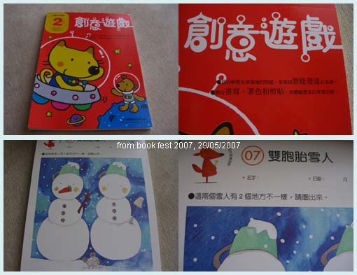 立體勞作游戲 4 本 - 裡面都有著可愛的圖片。沿著虛線把圖片給撕出來﹐然後跟著指示做就可以了。 右下角的是笨手笨腳的媽媽的劣作。