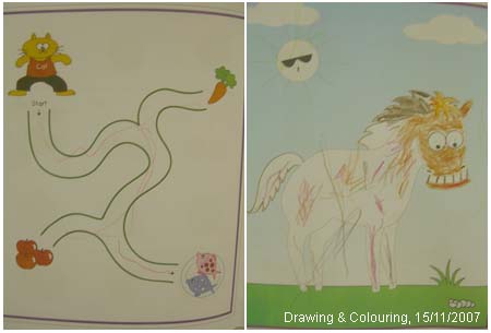 對於寫字和塗顏色﹐他好像興趣都不大。