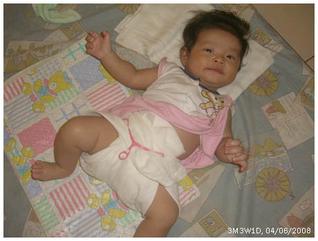(原本她的尿布都是在前面打個結而已﹐現在打了結卻常很容易鬆掉而)