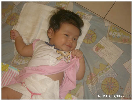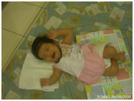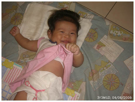 * 從上個星期開始﹐她開始會則睡﹐這樣半夜喂奶真的容易很多了。