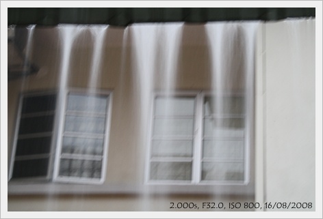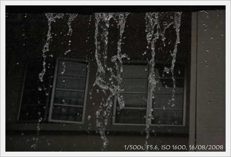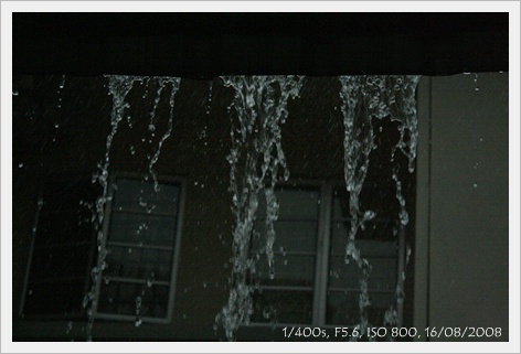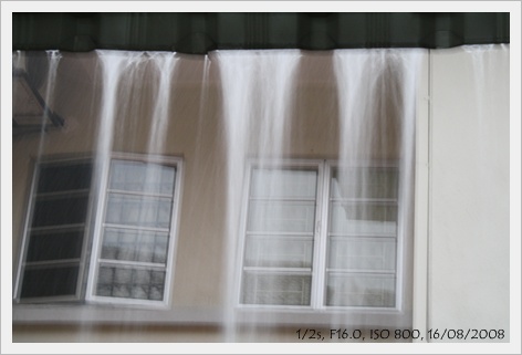 看到屋簷上流下來的雨水,