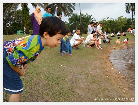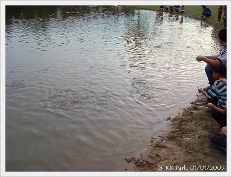 湖邊都有很多大人帶著孩子來喂魚 。。。