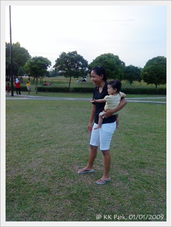 和kakak 在草地上追逐玩耍,還擺出 Ultraman 姿勢呢 。。。