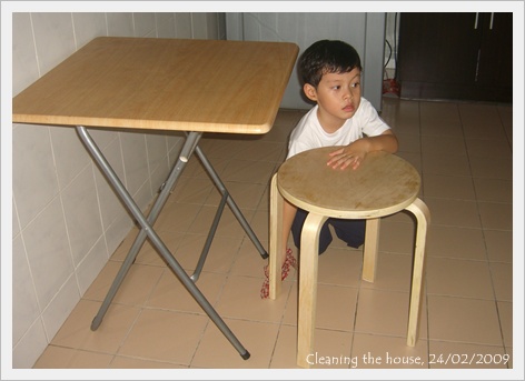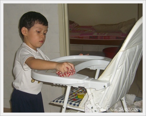 抹書櫥,抹鞋架,抹小桌子,抹椅子,抹冰箱門,抹妹妹坐的椅子 。。。。