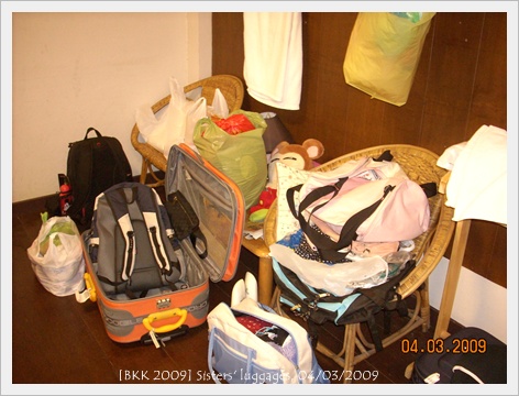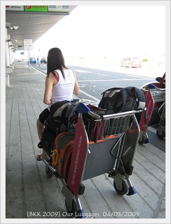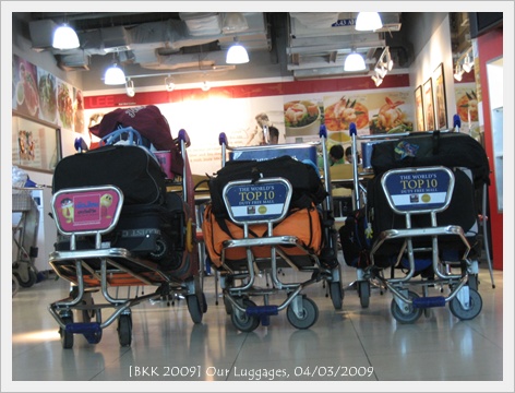 (在曼谷機場,我們正在享用午餐,這三輛推車一字排開,霸佔著人家的門口)