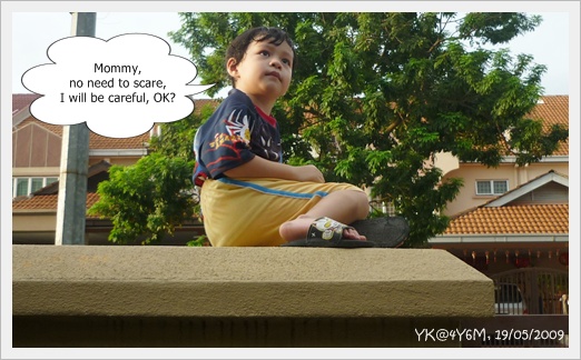 我說 : 因爲媽咪看到你這樣爬來爬去,媽咪很怕你會跌下來 。。。