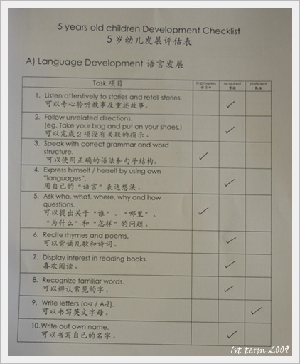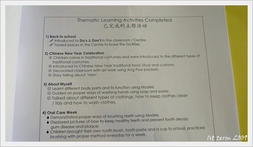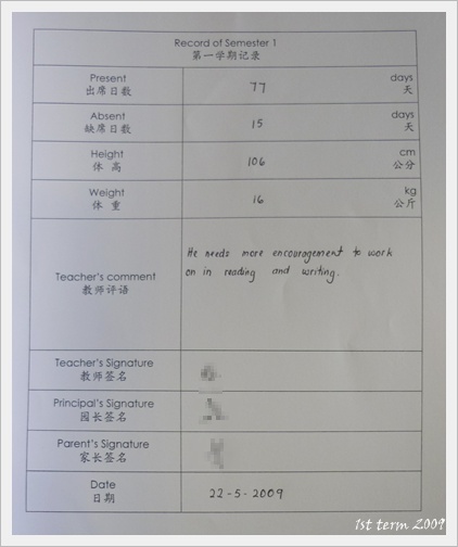 這些都是翊愷在2009年第一學期裏的學校作業,