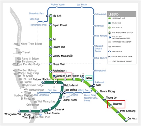 從EKKAMAI 站到 SIAM 站 車資是30baht。