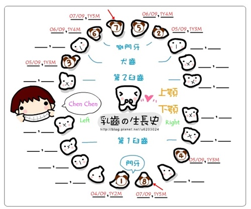 小白七號和八號冒出來了, 是上門牙和下門牙。 也確定了小白二號是側門牙, 而不是我一直以爲的犬齒。