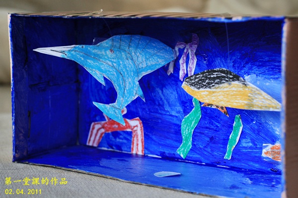 這就是翊愷第一堂美術課的作品 - 魚缸。