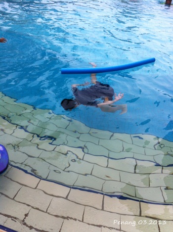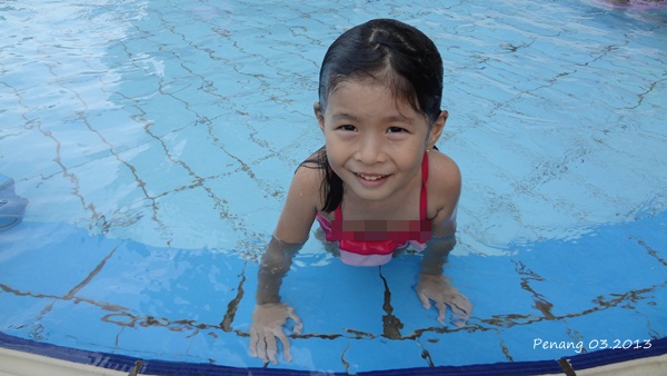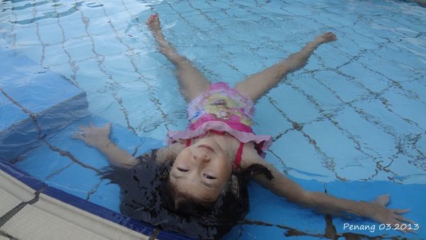 (就是這個黃色泳圈,從她小時候一直用到接近5嵗才不再需要它。)