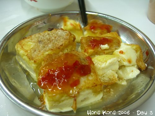 白豆腐上面釀了一點點的肉就煎﹐雖然普通可是真的好。吃。得。不。得。了。。。。