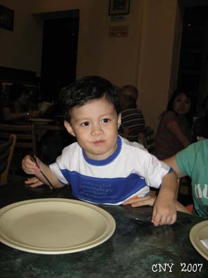 然後﹐因為新年嘛﹐大家都會聚在一起。我發覺到寶貝常都是自己一個人玩耍﹐就算一大堆的小朋友在他身邊玩得很開心﹐他只會站在一旁看他們玩﹐然後就自己跟自己玩。